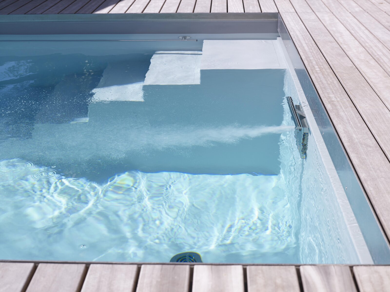 Ästhetik und Design ist das eine, Sicherheit und Funktionalität sind aber mindestens genauso wichtig. Die Möglichkeiten der Einbauteile sind gross und reichen von Treppen über Skimmer und Oberflächensauger bis hin zu Handläufen. Wir sorgen für den Feinschliff in Ihrem Pool mit beinahe nahtlosen Übergängen, schönen Designs und hochwertigen Einbauteilen.